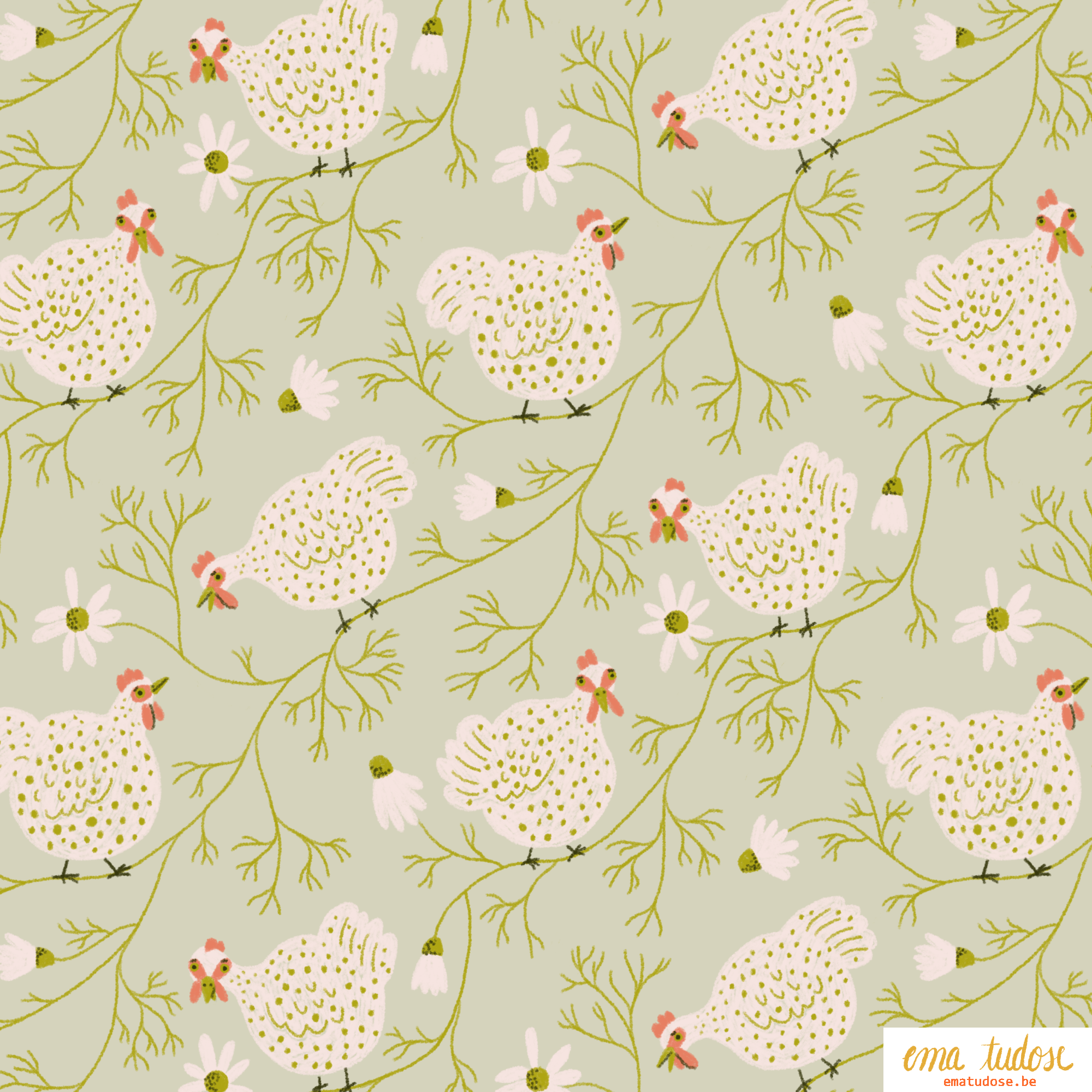 My work centers on hand-painted repeating patterns, inspired by the fantasy and magical realism stories I love to read.